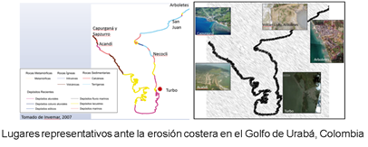 Para abordar un poco la panorámica de estado de erosión en que se encuentran algunas de las costas del golfo de Urabá se analizaran 5 lugares que son icónicos por su ubicación, sus procesos sedimentarios presentes, la composición del litoral diferente que se tiene y/o las alarmas por erosión costera que han presentado recientemente. Estos Lugares tal como se presenta a continuación, son: Capurganá y Sapzurro, Acandí, Turbo, Arboletes, dándole un enfoque principal a este último por la presencia de un hito turístico y geográfico para la región como es su Volcán de lodo, producto de la alta actividad diapírica que se presenta en el Caribe Colombiano y que en la actualidad está en alto riesgo a desaparecer por el proceso de erosión costera que aqueja a la región.