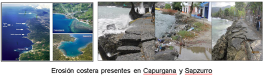 La problemática de erosión que se evidencie en estas bahías, se debe a su crecimiento como poblados y por ende a la alta demanda de material de playa para las respectivas construcciones que se requieren, lo que ha llevado a una inecuación constante en el balance sedimentario. Adicionalmente el arrecife coralino ha sido también alterado, en algunos lugares por contaminación y flujo de navegación, disminuyendo así el área arrecifal, y por otro en la extracción de material rocoso calcáreo proveniente de plataformas coralinas someras, contribuyendo ambas extracciones a la disminución de material sedimentario. Dicho desbalance sedimentario que allí se presenta genera incapacidad del sistema costero para responder ante los agentes físicos dinamizantes que interactúan en el litoral, como el oleaje, los periodos de tormenta, los cambios de nivel del mar, etc. Ocasionando por tanto un retroceso de la línea costera y afectando la infraestructura física de estos poblados