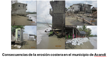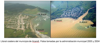 Sin embargo, este municipio aun teniendo un importante aporte fluvial y sedimentario, presenta una alta amenaza por erosión costera, afectando más de 20 predios en los últimos 2 años, como se puede observar más adelante. Los procesos de erosión en esta parte posiblemente se deban más a factores hidráulicos en la cuenca que han alterado un poco la desembocadura del rio Arquití, junto con la extracción de material de playa para las construcciones del municipio. Este es uno de los lugares que requiere con mayor urgencia medidas de monitoreo costero y de las cuencas de estos tres ríos, a la vez que la realización de un estudio detallado de la hidrodinámica local para así poder predecir y proponer la mejor alternativa de protección costera, que no necesariamente corresponda a obras duras como diques y espolones sino por el contrario a la gestión de las cuencas, y a una reevaluación de algunos predios en zona de riesgo, toda vez que es válido considerar la reubicación como medidas de prevención ante este fenómeno de erosión mientras se logra equilibrar el sistema costero.