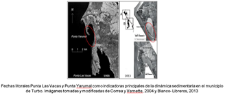 Correa, I.D. y Vernette G. 2004. Introducción al problema de la erosión litoral en Urabá (Sector Arboletes – Turbo) Costa Caribe Colombiana. Boletín de Investigaciones Marinas y Costeras, 33: 5-26.Correa, I., Vernette, G., (2004). Introducción al problema de la erosión litoral en Urabá (sector Arboletes-Turbo) costa Caribe colombiana. Bol. Invest. Mar. Cost., Vol. 33, pp. 5-26.