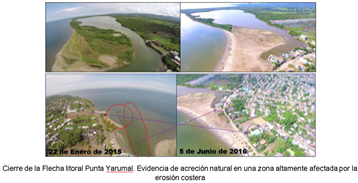 Sin embargo, debido a que los pescadores y lancheros asentados al interior de la bahía El Uno, debía continuar saliendo a desempeñar sus respectivas actividades, entonces abrieron por sus medios, una bocana en la zona más estrecha de la nueva flecha litoral, lo cual puede ser el principio de una nueva erosión en el sistema de la flecha litoral, y por tanto se ralentice la recuperación de las playas del municipio de Turbo. En la actualidad hemos evidenciado como cada vez se agranda esta apertura, lo cual implica una necesidad en monitorear esta zona conjunto a todo el sistema para establecer el nivel de amenaza ante una nueva erosión o una estabilidad del sistema, tal que permita a las autoridades tomar decisiones en la gestión del territorio costero a largo plazo, como la pavimentación del vía de este sector que nunca ha sido llevada a cabo por el alto riesgo de avance de la erosión sobre el territorio.